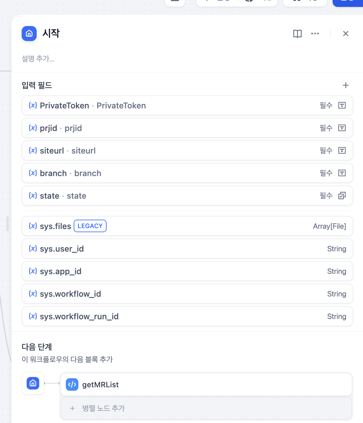 이제 다음 단계로 GetMRList 노드를 보도록 하겠습니다.